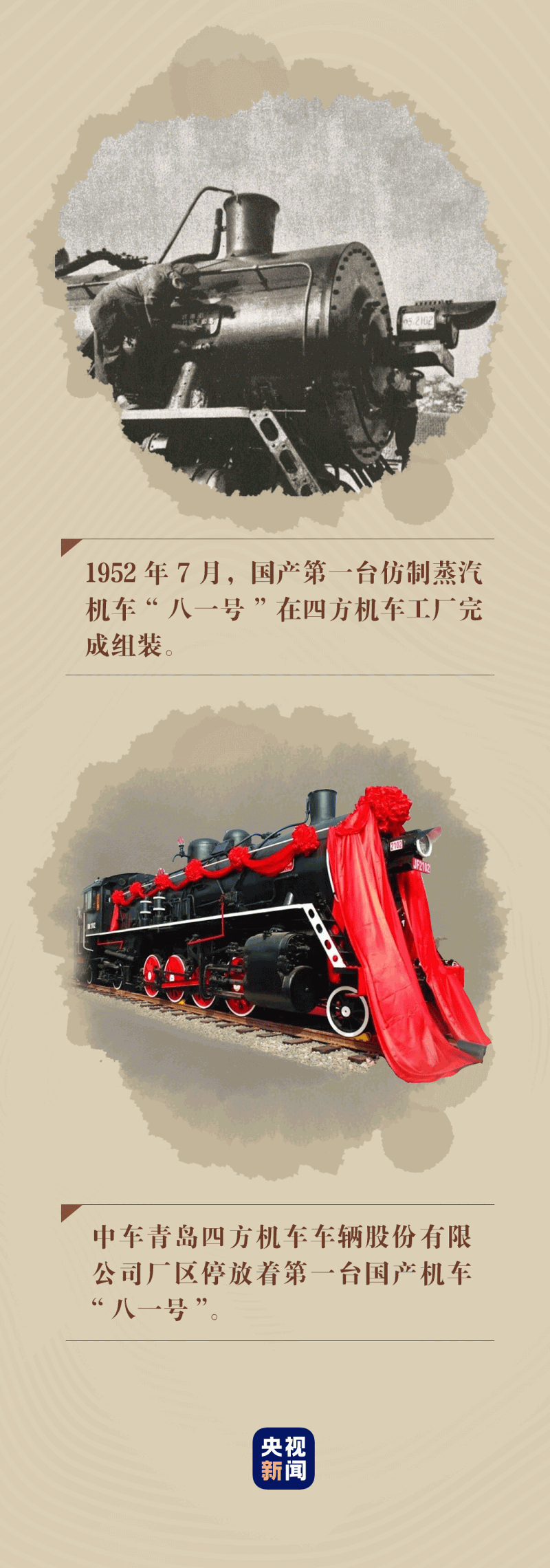 1952年7月26日,国产第一台仿制蒸汽机车“八一号”在四方机厂完成组装并试运行。此后几十年,“八一号”机车几乎跑遍了全国各个角落,到1992年5月30日,在淮南机务段光荣退役。
